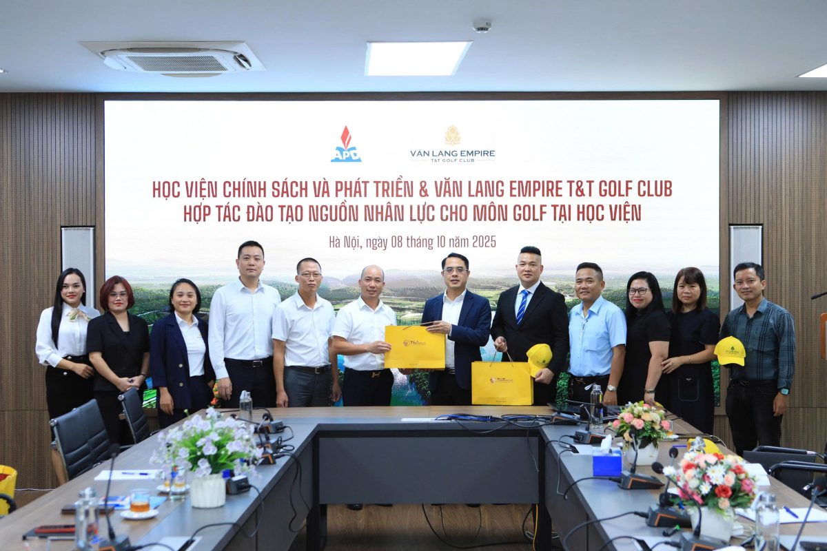Sáng ngày 08/10, tại Hà Nội, Văn Lang Empire T&T Golf Club và Học viện Chính sách và Phát triển (HVCSPT) đã ký kết chương trình hợp tác đào tạo nhằm nâng cao kiến thức chuyên môn, kỹ năng thực tiễn và tạo nguồn nhân lực chất lượng cao phục vụ cho sự phát triển bền vững của ngành golf Việt Nam.