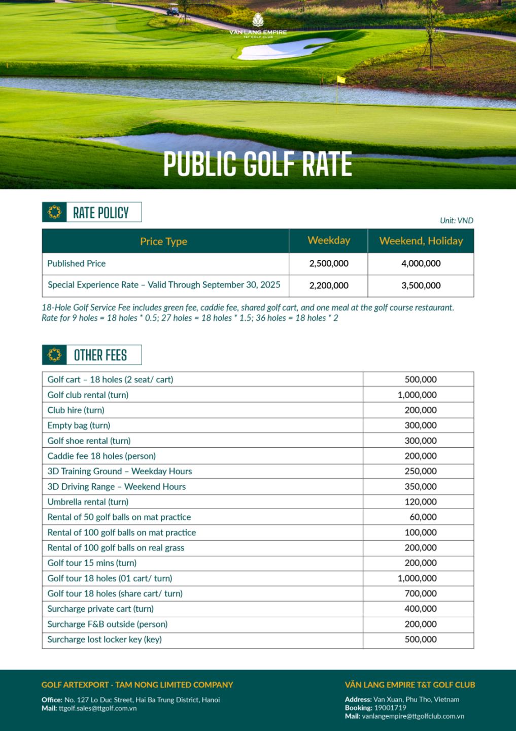 Take advantage of exclusive offers for guests experiencing Văn Lang Empire T&T Golf Club where challenging golf holes meet the untouched nature of a land rich in history and legend.